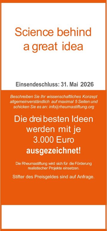 Beschreiben Sie Ihr wissenschaftliches Konzept allgemeinverständlich auf maximal 5 Seiten und schicken Sie es an: info[at]rheumastiftung.org
